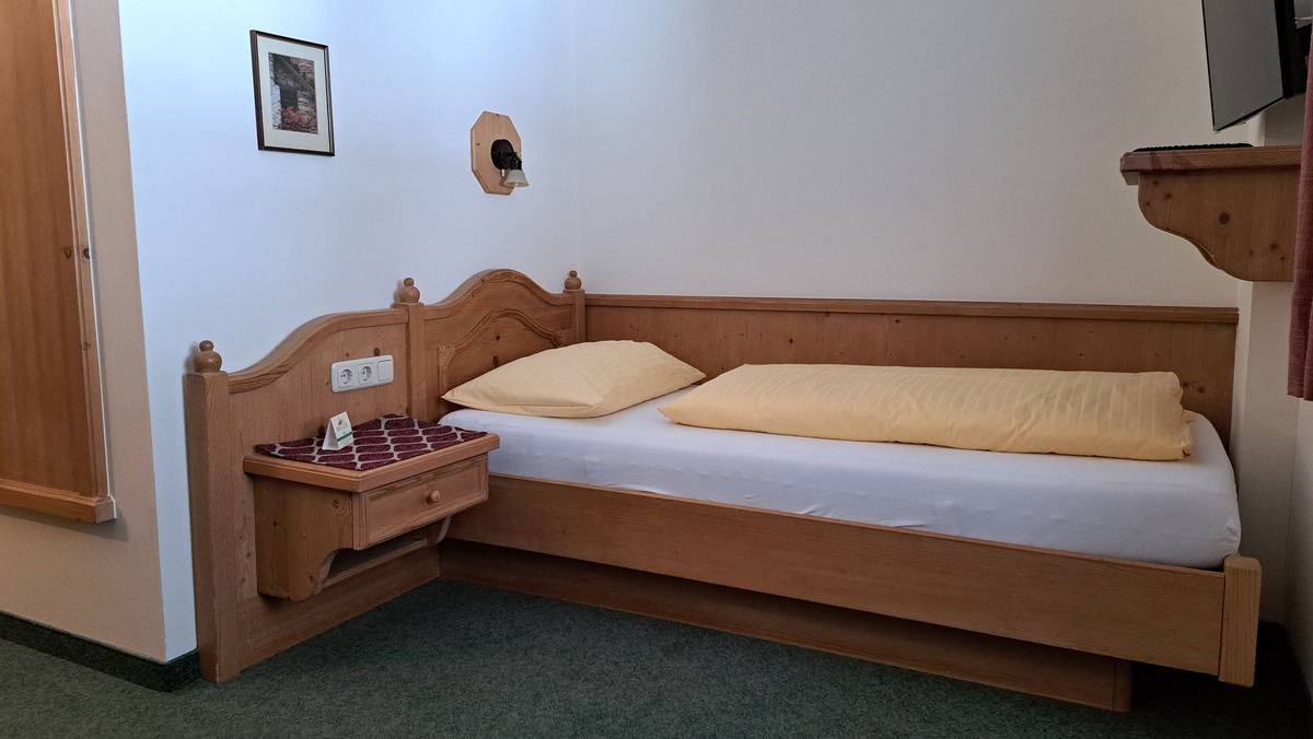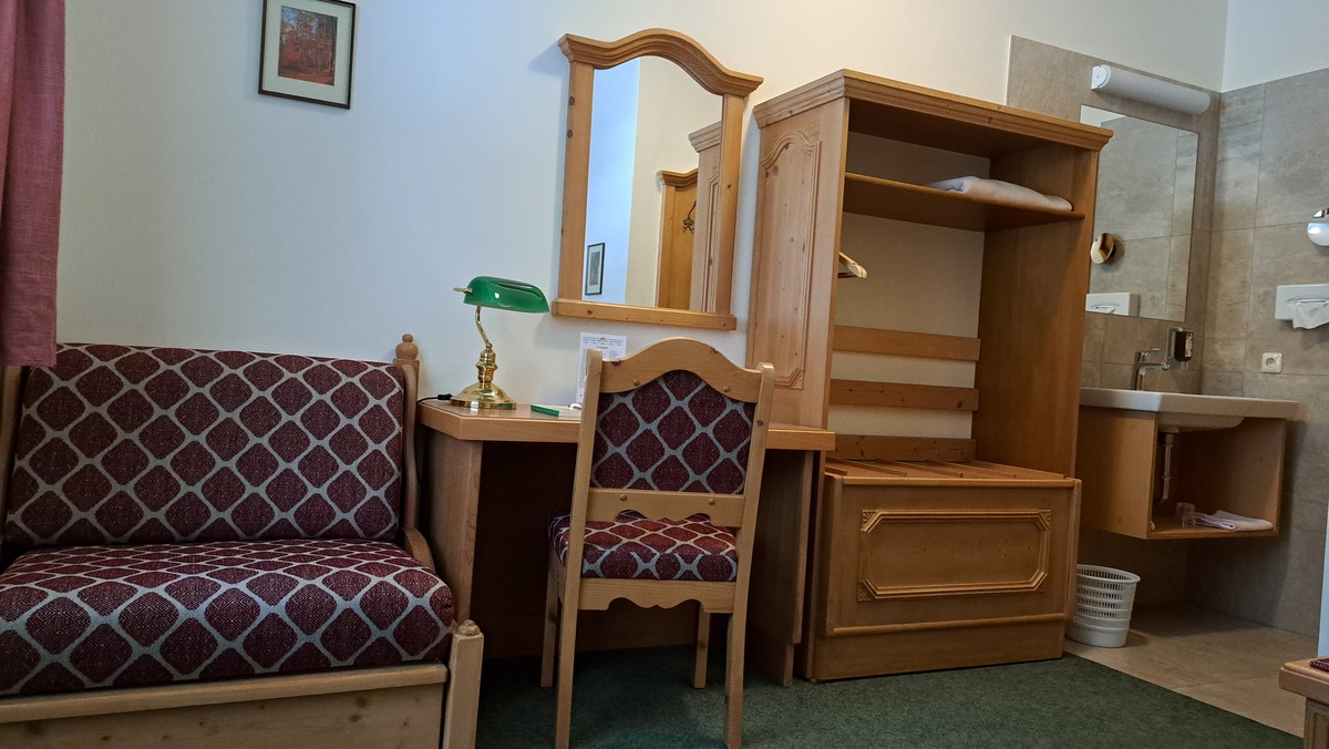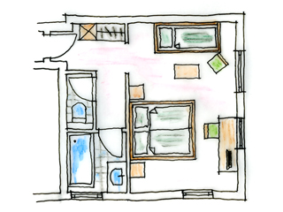 FAMILY SUITE, Spacious family-size Suite in sunny colours, noble natural wood with a living room and bed room together and a children`s bedroom with two single beds separated by the stairs , a large bathroom with shower, hairdryer, vanity mirror, free toiletries, toilet, 2 large Flat TVs, Wireless LAN, facing south with a view of the meadows and mountains. The suite is for parents with children aged 6 and over.