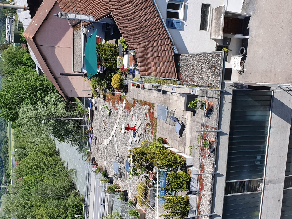Auf unserer wunderbaren Dachterrasse im 2. Stock dürfen Sie sich sehr gerne auf dem Liegestuhl, der Lounge oder an einem der zahlreichen Tische verweilen.