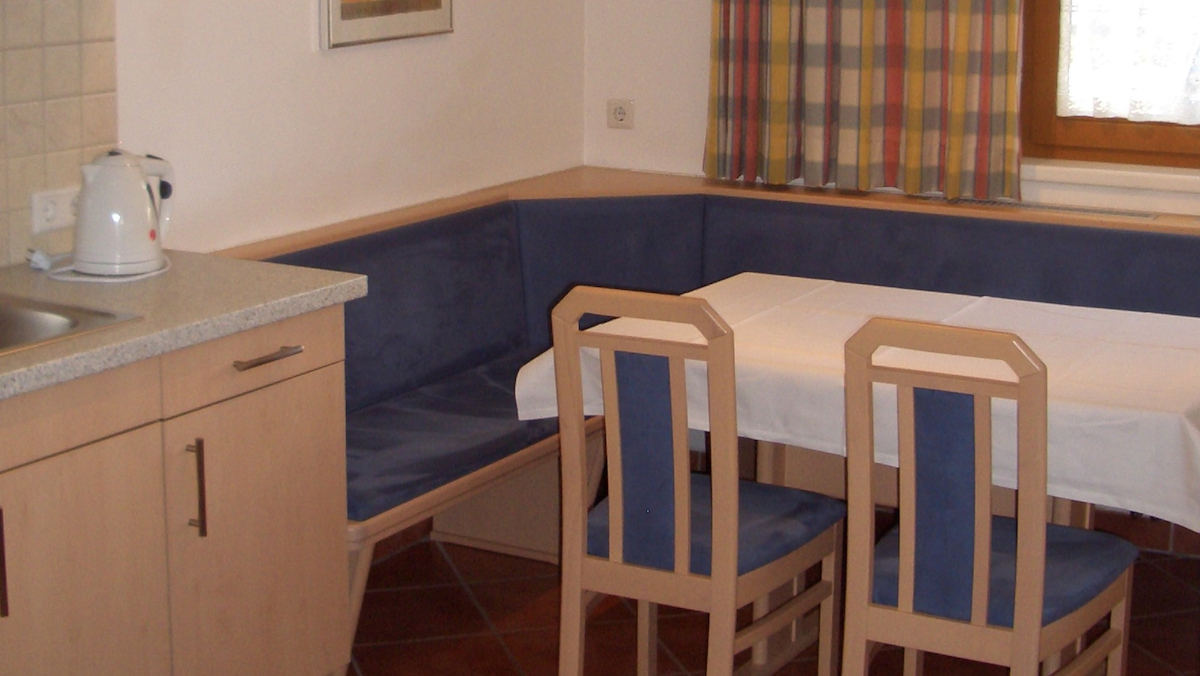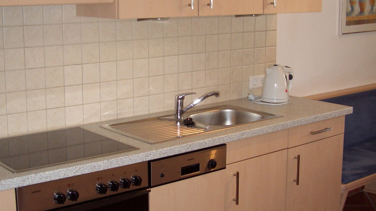 • Küche mit Sitzecke, Geschirrspüler, 4-Plattenherd, Kaffeemaschine, Backrohr, Kühlschrank