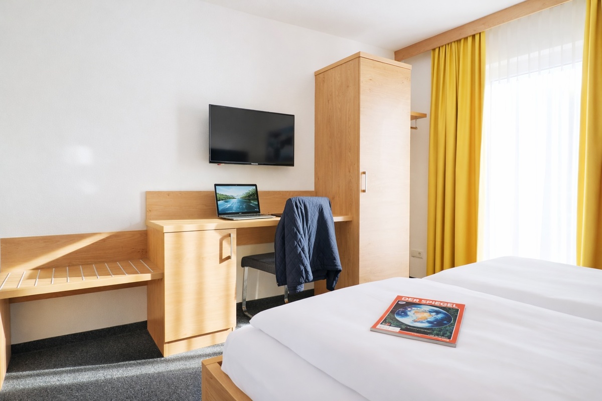 Die Fenster liegen etwas höher im Raum (Dachschräge) – genau deshalb bieten wir dieses Zimmer zu einem besonders attraktiven Preis an.