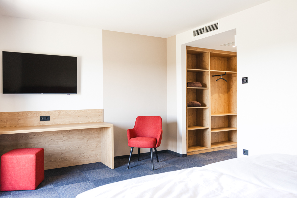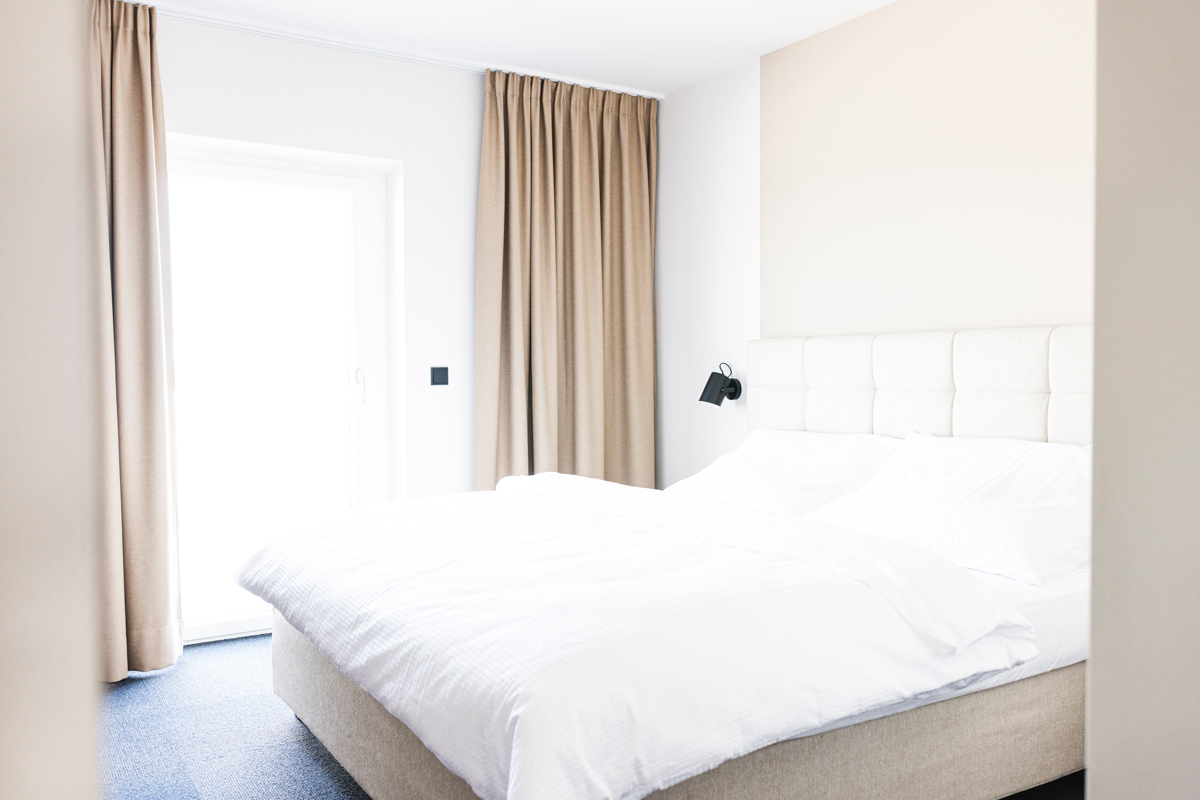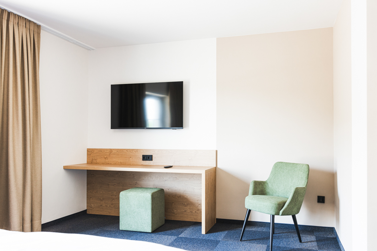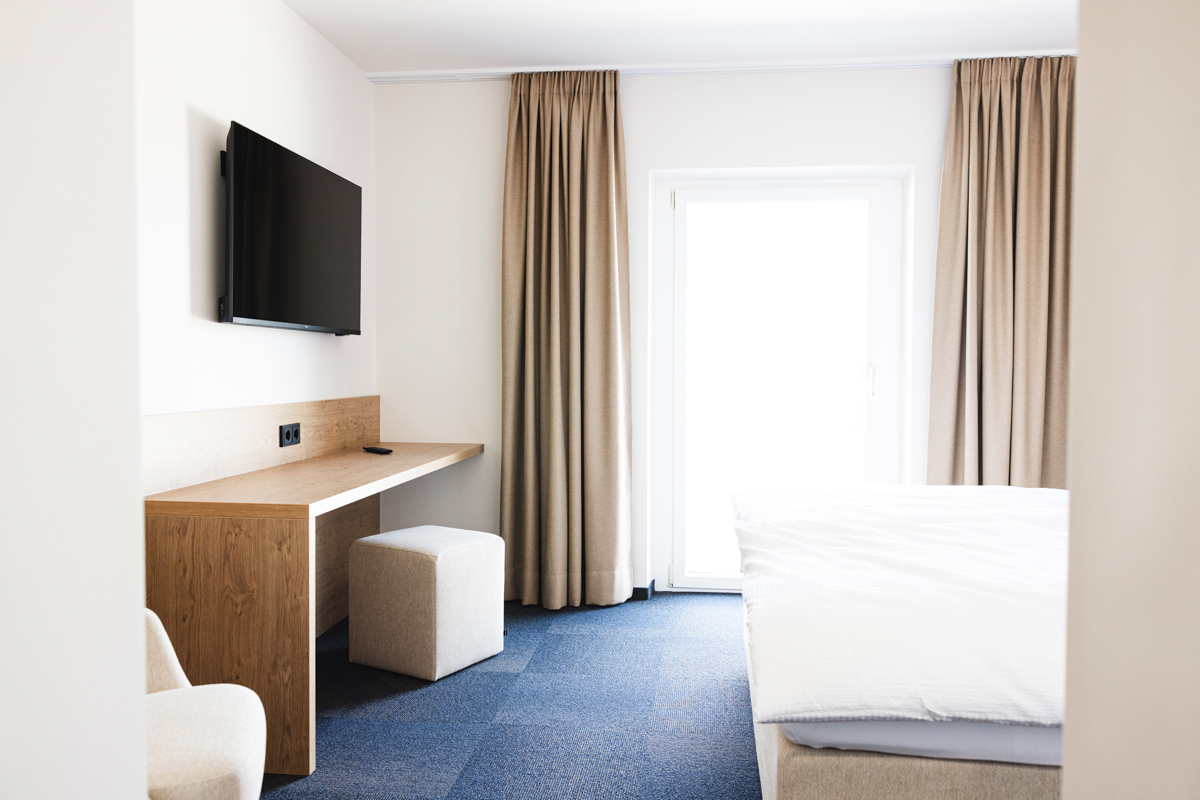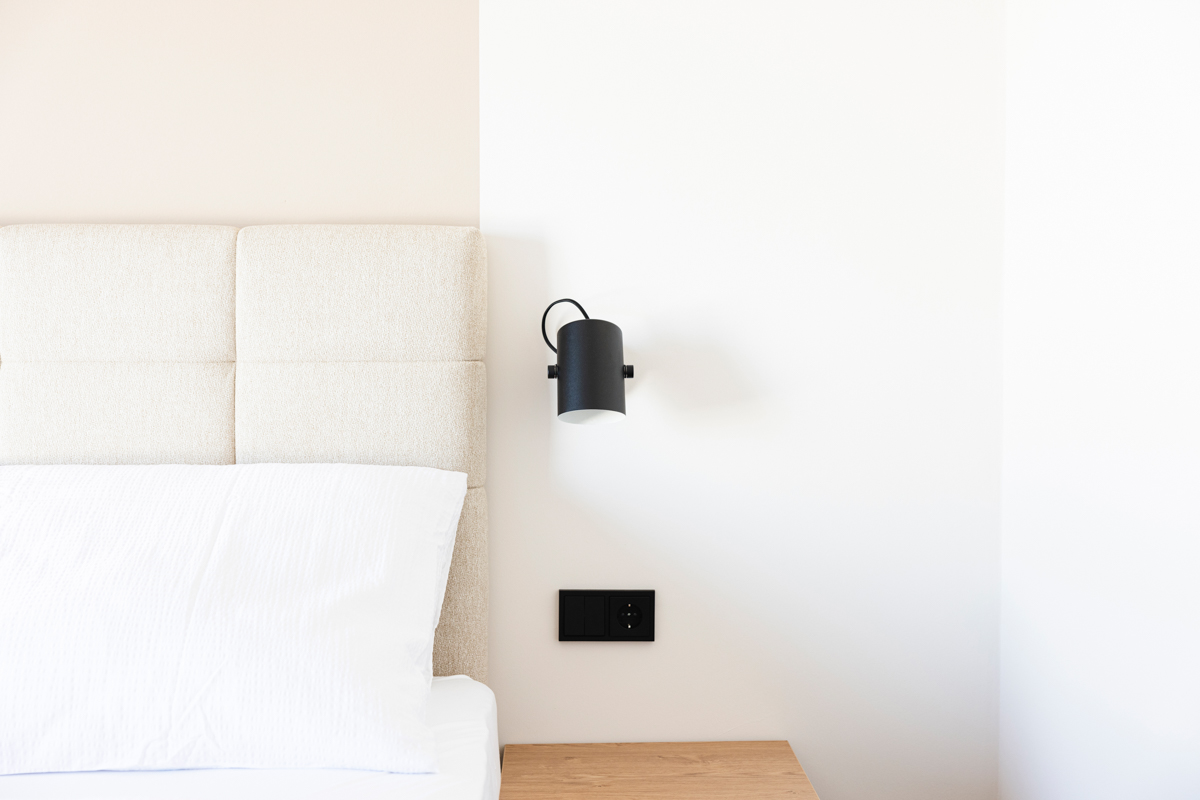 Unser modernes Doppelzimmer mit großzügiger Terrasse ist ideal für alle, die entspannt das Südoststeirische Vulkanland entdecken möchten. Helle Räume, hochwertige Ausstattung und liebevolle Details schaffen eine komfortable Auszeit.