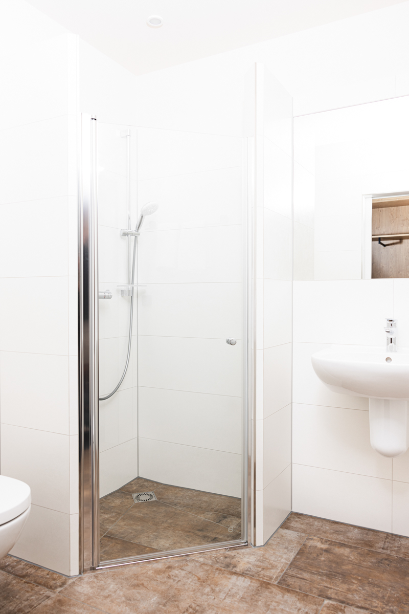 • Badezimmer mit großer Walk-In-Dusche, WC & Pflegeprodukten von March
