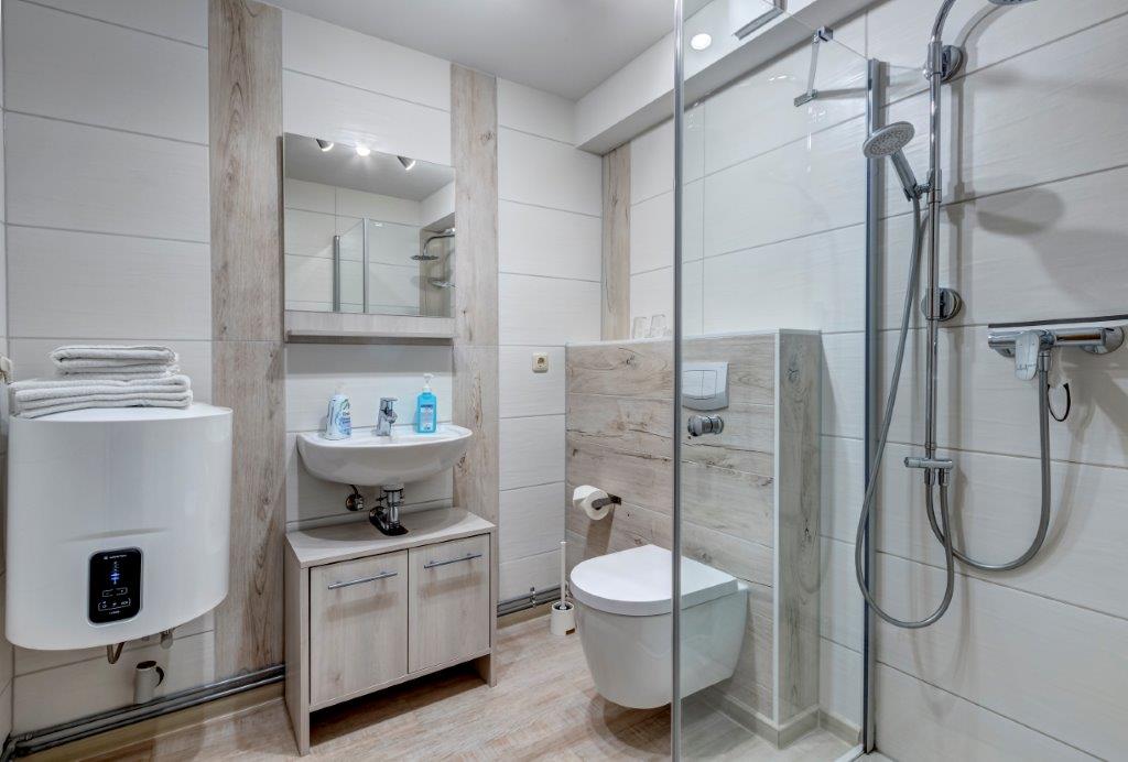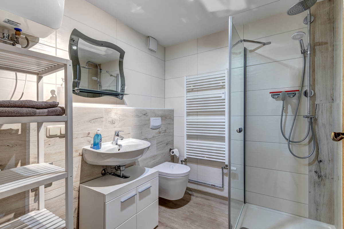Heizung, privater Eingang, Schrank, Reinigungsmittel, Dusche, WC,