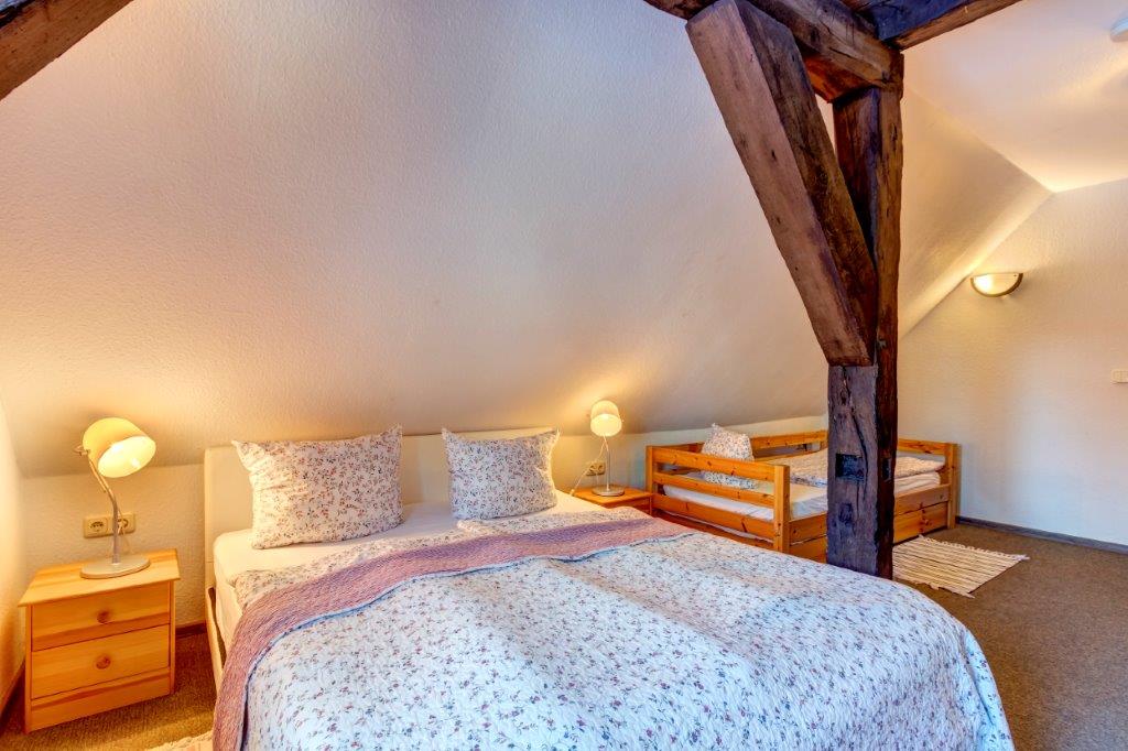 Schlafzimmer 2 Einzelbetten (90x200), 1 großes Doppelbett (160x200)