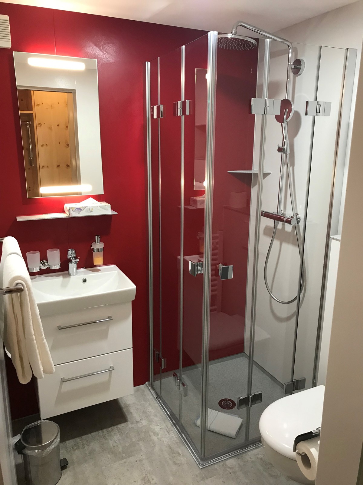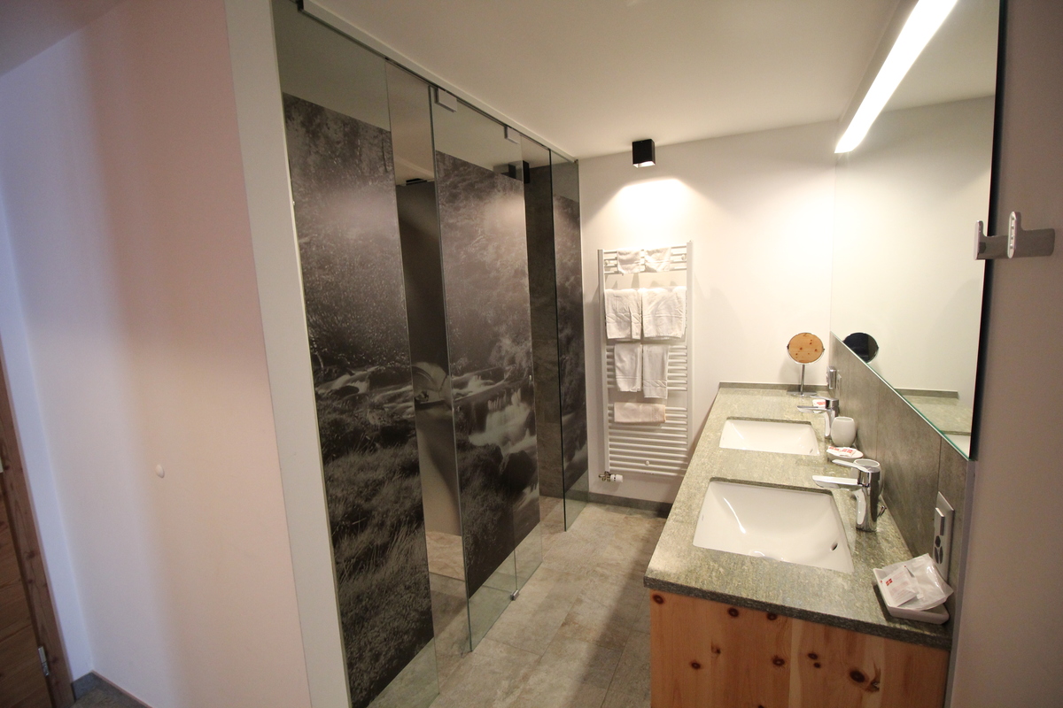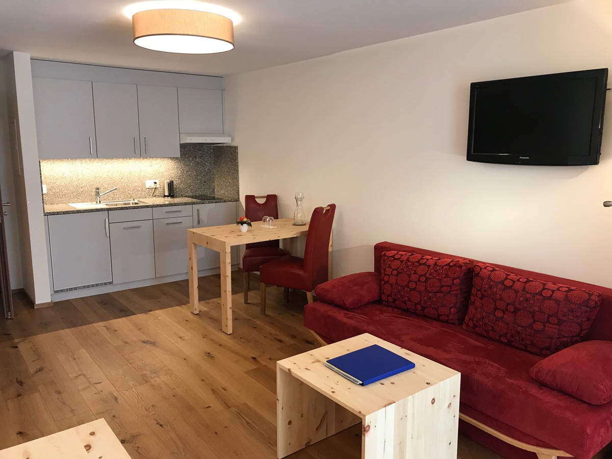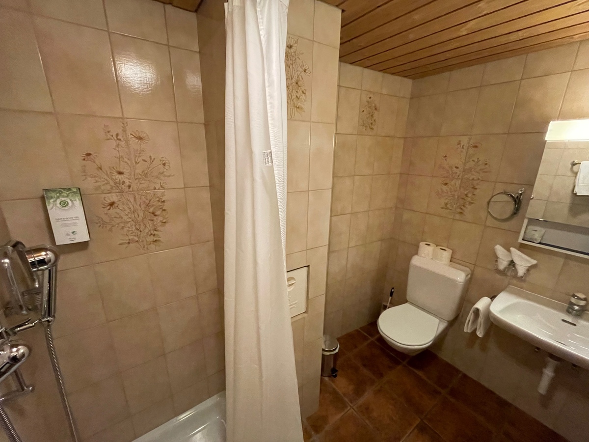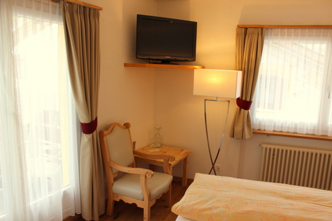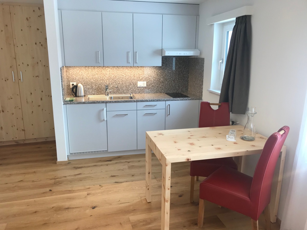 Beautiful, spacious double rooms (30m² studio) with two beds, pinewood furniture, shower/WC, hairdryer, shower gel, shampoo, satellite TV, minibar, safe, radio, telephone, seating area with sofa, free Wi-Fi, kitchenette, and balcony.